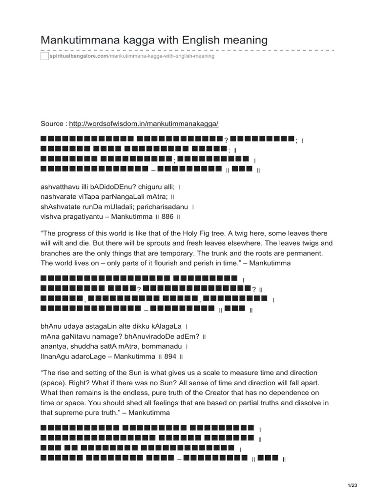 Mankutimmana Kagga With English Meaning Moksha Indian Philosophy