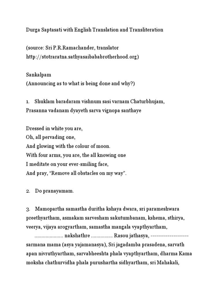 Devi Chandi Paath With English Translation And Transliteration Devi Kali