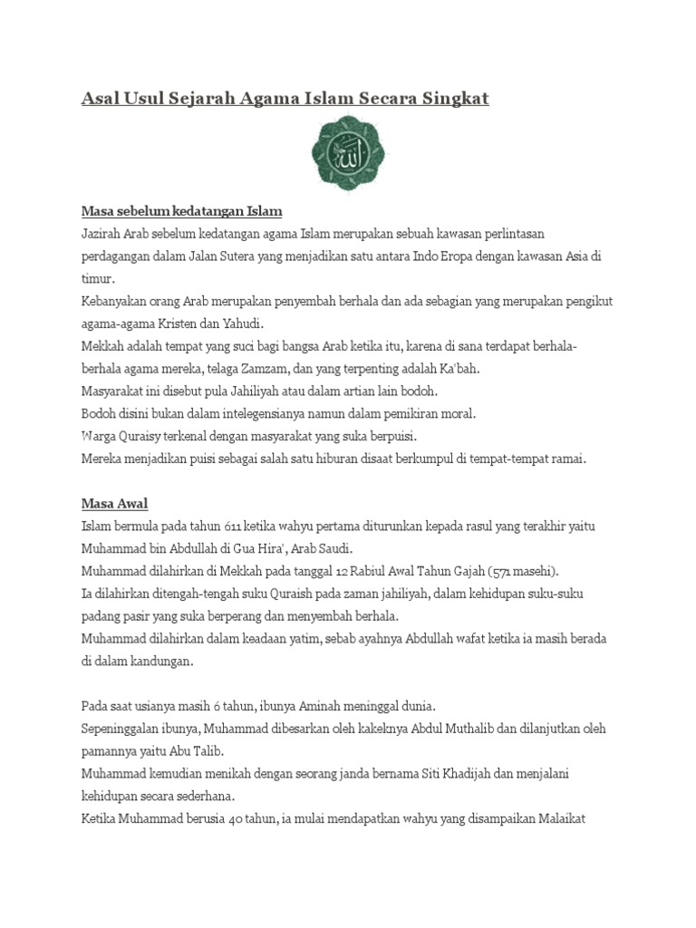 Doc Asal Usul Sejarah Agama Islam Secara Singkat Isral Firman Academia Edu