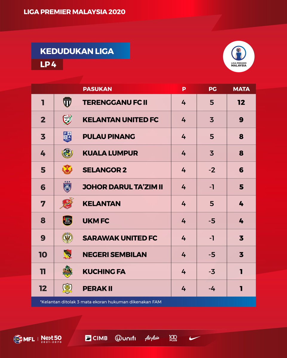 Liga perdana kelantan 0 3 p. Keputusan carta kedudukan terkini liga premier malaysia 2020 dan jadual. Jadual perlawanan dan keputusan terkini liga premier malaysia 2020 lp4 aksi semua perlawanan liga perdana lp1 menjadi tumpuan oleh penyokong masing masing yang mengharapkan pasukan pilihan mereka mencipta keputusan yang positif selain dapat menambah mata dalam carta liga. Sebanyak 16 pasukan telah layak ke piala malaysia 2020 iaitu 11 pasukan dari cimb liga super manakala 5 pasukan dari liga premier.