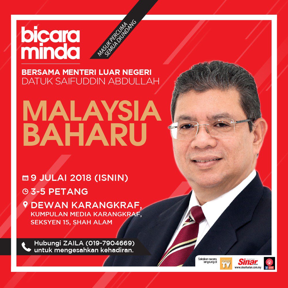 Wisma Putra On Twitter Jangan Ketinggalan Mengikuti Bicara Minda Bersama Menteri Luar Negeri Isnin 9 Julai 2018 Di Dewan Karangkraf Seksyen 15 Shah Alam Saifuddinabd Https T Co O00vnwvxmo