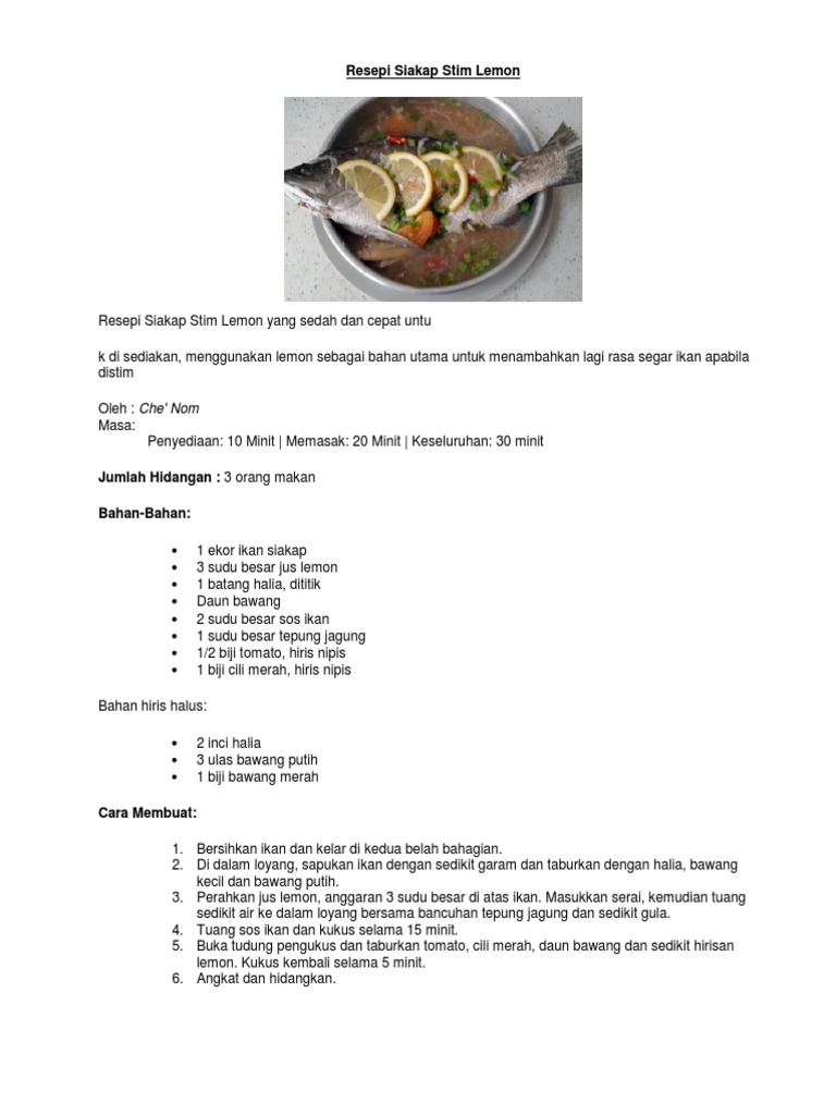 Resepi Siakap Stim Limau Che Nom